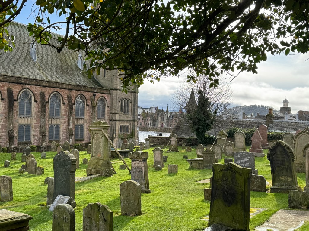 One of the things I love about the cities and towns and villages we’ve been through is the age. The stonework and carpentry and glazing that is everywhere is a testament to the skill and artistry of the folks who created it. We walked along the riverfront, through a graveyard, then we went to a pub (an entry for your spreadsheet Jim) for a cheese board, beer and wine. Then we went home.