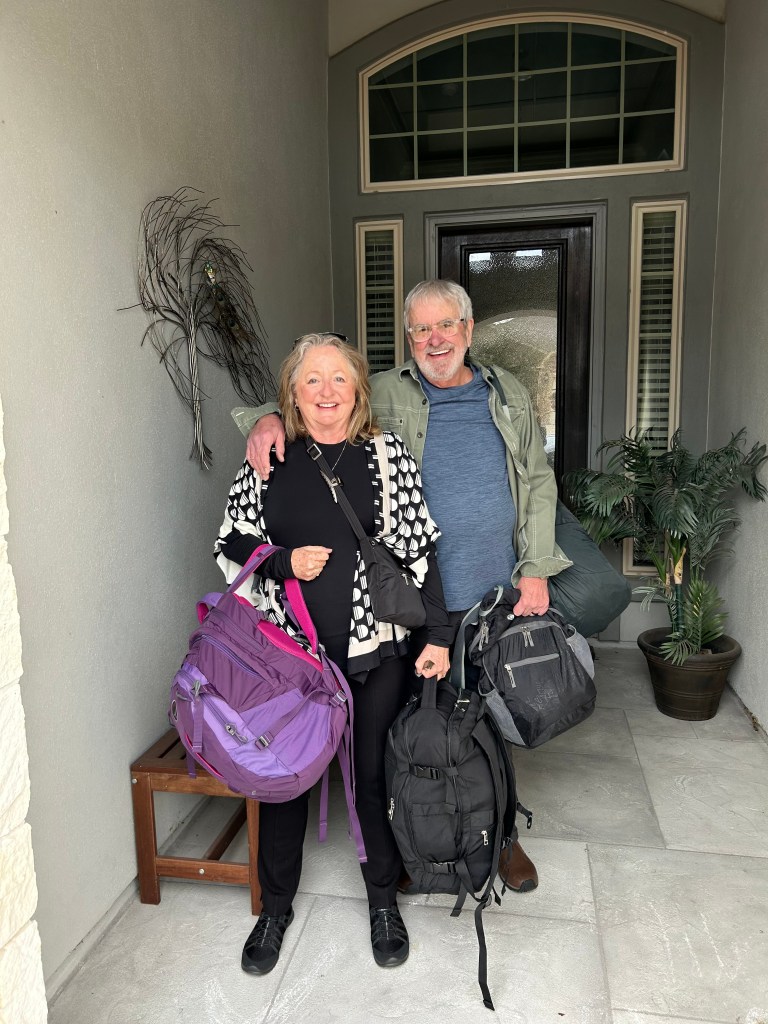 Liz’s granddaughter took the picture you see. She titled it “First Day at School”. And we set off. Three and a half hour fight to JFK, three-ish hour layover there (I had set it up that way because I’d never been to that airport and was unsure how they handled plane changes with international passengers) it turns out we would have been fine with a 1 hour layover. Then six and a half over the Atlantic. Liz caught a couple of hours, I didn’t sleep at all. At the end of that 6 1/2 hours, as Liz was trying to get semi-prepared for disembarking, she started gathering things up. She struggled. I noticed her trying to pick things up with her feet or move things over so that she could reach them. You can’t bend forward at the waist and reach the floor (deck?) of an airplane. When I saw her struggling, I bent over and grabbed it like a cat grabbing a mouse. I was sitting across the aisle…intentionally, everything is great (well, at least goodish). She started gathering things in her lap. Now, for me at this point in a flight, I’ve got my minimalist load corralled and I’m running through my moves for when we touch down and arrive at the gate. Liz is looking like a hoarder who just scored a load at a garage sale and has to carry it home with no container. Things start dribbling off her lap as she tried (vainly) to compel her feet to do her bidding. I was picking things up as she moved them within reach and putting them in her lap. They would promptly slide off again. At one point the guy sitting behind me started picking things up and giving them to Liz. She was giggling the whole time.
